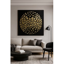 Название: «Золотой вихрь». Размер: 100 x 100 см. Техника: рельефная живопись с позолотой. Эта потрясающая картина представляет собой абстрактный вихрь фактурных золотых элементов на глубоком черном фоне. Композиция из многочисленных золотых фрагментов, напоминающих драгоценные камни или металлические детали, создает ощущение движения и роскоши. Картина идеально впишется в современный интерьер, добавив элегантности и изысканности любому помещению. Благодаря своему размеру 100 x 100 см, она идеально подойдет в качестве центрального элемента гостиной, спальни или офиса. Уникальная текстура и игра света на золотых поверхностях делают эту картину настоящим произведением искусства для ценителей эксклюзивного декора. Стоимость картины – 600 евро. Я также создаю похожие картины любого размера на заказ.